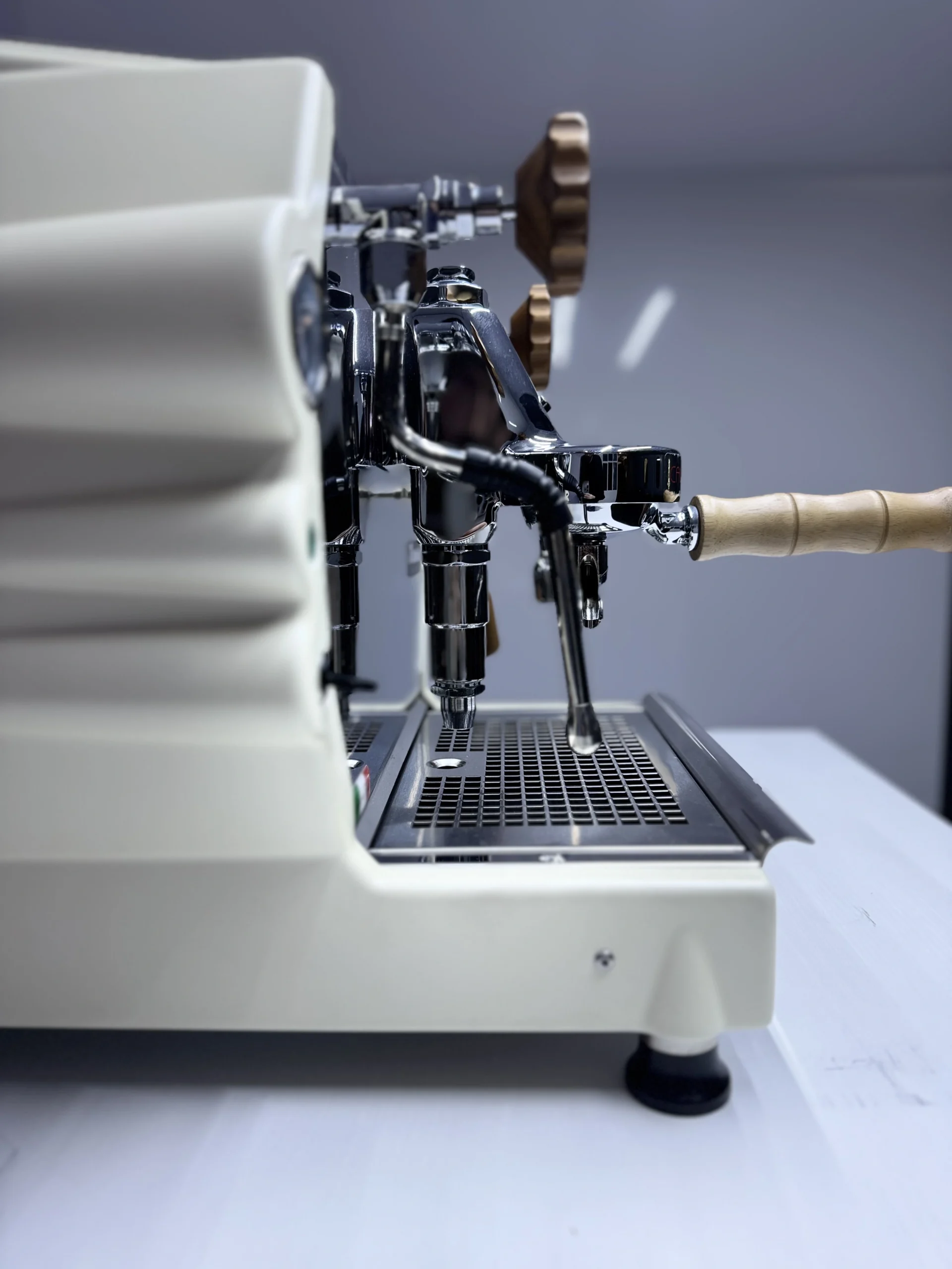 Abbiamo realizzato questa macchina per il barista. È dotata di una lancia vapore e di una lancia per l’acqua calda separata. Per offrire il massimo controllo, include sia un manometro della pressione della caldaia sia un manometro della pressione della pompa. Funzionalità standard come il l’autolivellamento e la vaschetta removibile in acciaio inossidabile rendono questa macchina perfetta per un’elevata efficienza.